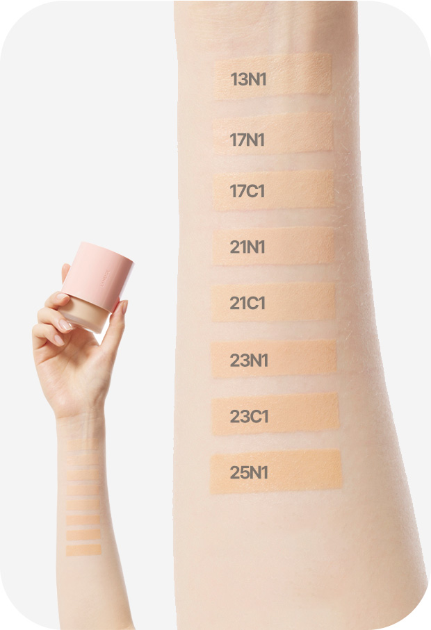 정제수, 다이페닐실록시페닐트라이메티콘, 티타늄디옥사이드 (CI 77891), 메틸트라이메티콘, 글리세린, 카프릴릴메티콘, 다이메티콘, 변성알코올, 피이지-10다이메티콘, 다이아이소스테아릴말레이트, 비스-피이지/피피지-14/14다이메티콘, 프로판다이올, 티타늄디옥사이드, 폴리메틸메타크릴레이트, 다이스테아다이모늄헥토라이트, 다이메티콘/폴리글리세린-3크로스폴리머, 트라이데실트라이멜리테이트, 소듐클로라이드, 황색산화철, 1,2-헥산다이올, 폴리솔베이트80, 다이소듐스테아로일글루타메이트, 알루미늄하이드록사이드, 폴리하이드록시스테아릭애씨드, 라우릴폴리글리세릴-3폴리다이메틸실록시에틸다이메티콘, 트라이메틸실록시실리케이트, 폴리페닐실세스퀴옥세인, 적색산화철, 하이드로제네이티드레시틴, 메틸메타크릴레이트크로스폴리머, 알루미나, 카프릴릴글라이콜, 아이소도데케인, 락토바실러스발효용해물, 향료, 판테놀, 글리세릴카프릴레이트, 에틸헥실팔미테이트, 레시틴, 아이소스테아릭애씨드, 아이소프로필팔미테이트, 합성플루오르플로고파이트, 부틸렌글라이콜, 다이소듐이디티에이, 폴리글리세릴-3폴리리시놀리에이트, 시메티콘, 아크릴레이트/폴리트라이메틸실록시메타크릴레이트코폴리머, 흑색산화철, 다이프로필렌글라이콜, 트라이에톡시카프릴릴실레인, 하이드록시에틸셀룰로오스, 실리카, 소듐시트레이트, 토코페롤, 틴옥사이드, 폴리쿼터늄-10, 락틱애씨드/글라이콜릭애씨드코폴리머, 펜타에리스리틸테트라-다이-T-부틸하이드록시하이드로신나메이트, 폴리솔베이트60, 다이소듐포스페이트, 소듐포스페이트, 소듐벤조에이트, 락틱애씨드, 포타슘솔베이트, 다이아몬드가루, 잔탄검